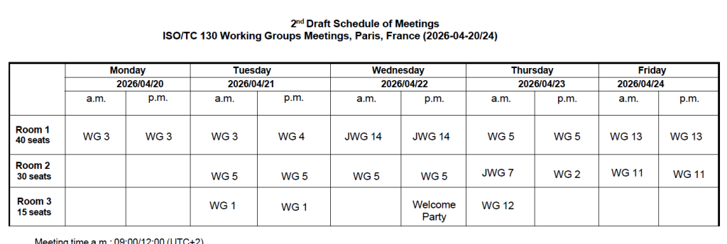 ISO/TC130国際会議の詳細は近日中にお知らせすることを計画しています。(ISO/TC130の利害関係者の方で今回の国際会議に関係がある企業様は事務局までご連絡をお願いいたします)